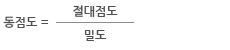 - - 동점도(Kinematic Viscosity) : 스톡스(Stokes : ㎠/sec), 동점도를 C. G. S단위로 표시한 것을 Stokes라 하며 그 1/100을 취하여 Centistokes(cSt)라 한다.